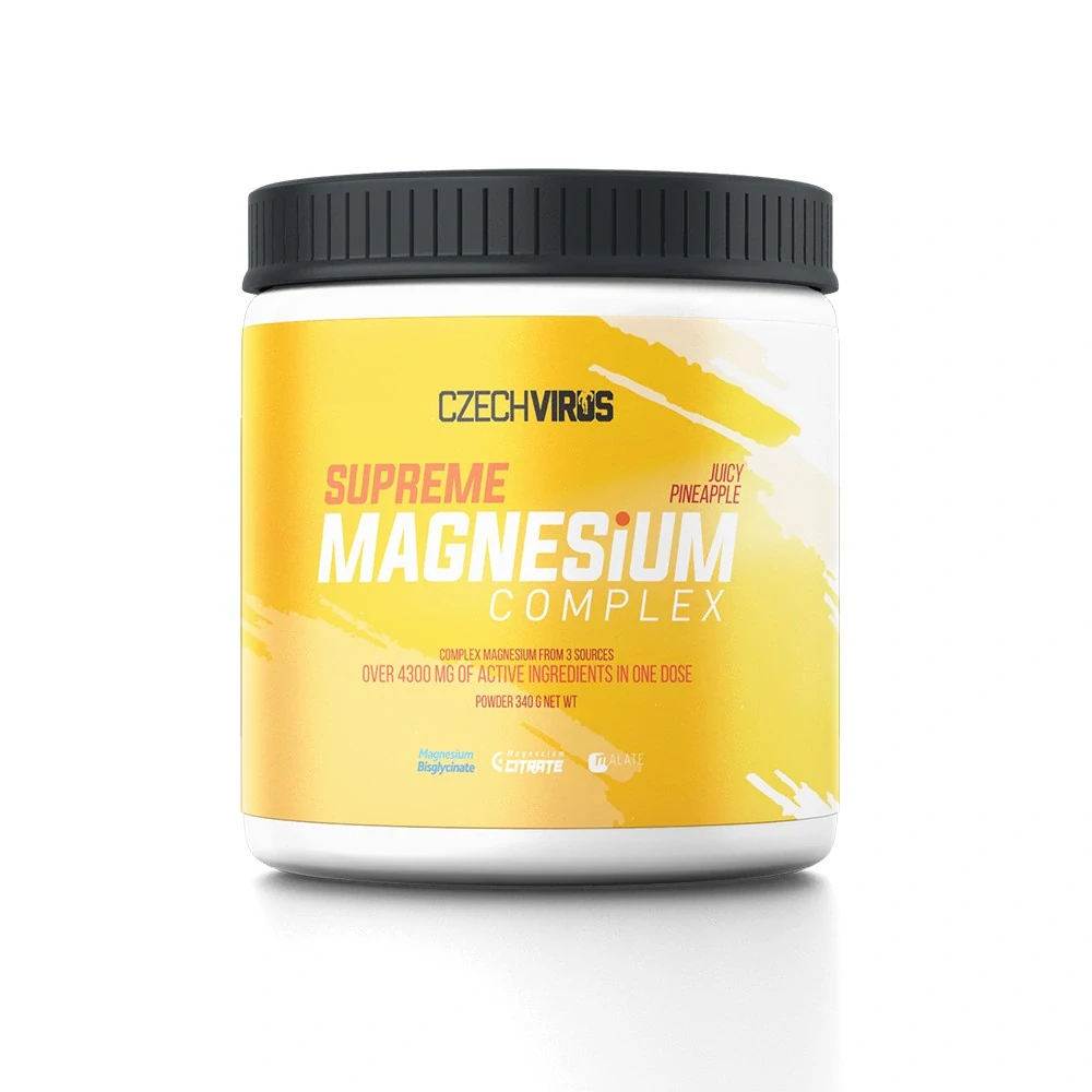 Supreme Magnesium Complex představuje komplexní kombinaci hořčíku v třech variacích – bisglycinátu, citrátu a malátu. Hořčík patří mezi naprosto klíčové minerály v našem těle, které je bohužel často ve stavu nedostatku. Nachází se téměř ve všech našich orgánech, které ho aktivně využívají pro svůj chod a různé biologické procesy. Hořčík ovlivňuje více než 300 různých funkcí našeho těla a je především součástí svalů, srdce a ledvin. Pro sportovce představuje hořčík základní součást doplňkové výživy. Czech Virus Supreme Magnesium Complex je navíc dostupný ve dvou lahodných příchutích – osvěžující ananas a exotický pomeranč.